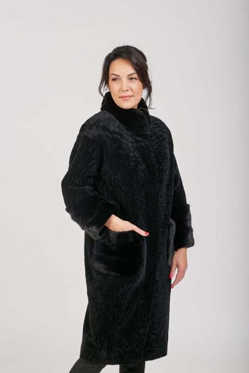 • ШУБА ЖЕНСКАЯ, МЕХ АСТРАГАН, ВОРОТНИК НОРКА