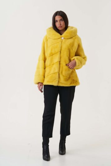• ШУБА ИЗ МЕХА НОРКИ, МОДЕЛЬ КИМОНО, ЖЁЛТЫЙ ЦВЕТ