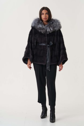 • ШУБА ИЗ МЕХА НОРКИ, МОДЕЛЬ КИМОНО, УГОЛЬНЫЙ ЦВЕТ