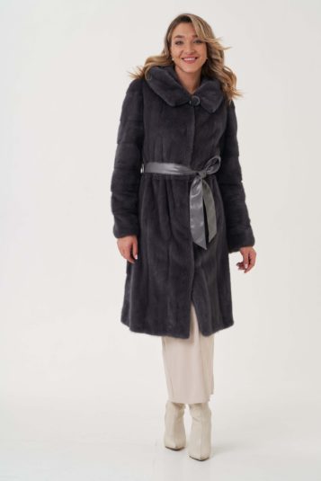 • ШУБА ИЗ МЕХА НОРКИ, МОДЕЛЬ КОКТЕЙЛЬ, ГРАФИТОВЫЙ ЦВЕТ
