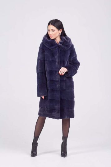 • ШУБА ИЗ МЕХА НОРКИ С КАПЮШОНОМ, КРОЙ ПОПЕРЕЧНЫЙ